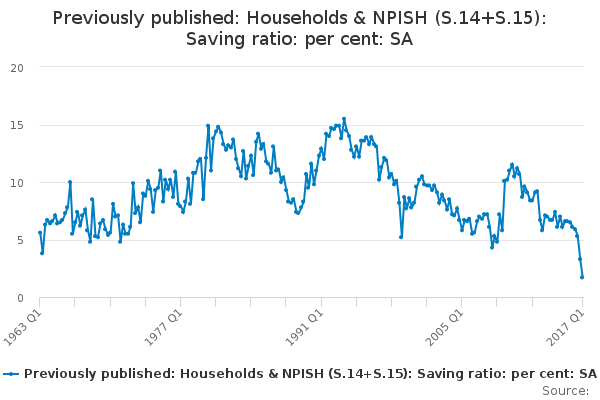 Download this time seriesPreviously published: Households & NPISH (S.14+S.15): Saving ratio: per cent: SA