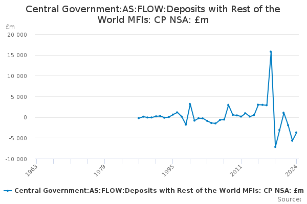 Download this time seriesCentral Government:AS:FLOW:Deposits with Rest of the World MFIs: CP NSA: £m