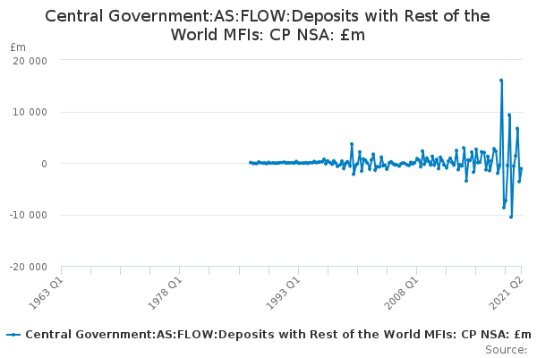 Download this time seriesCentral Government:AS:FLOW:Deposits with Rest of the World MFIs: CP NSA: £m