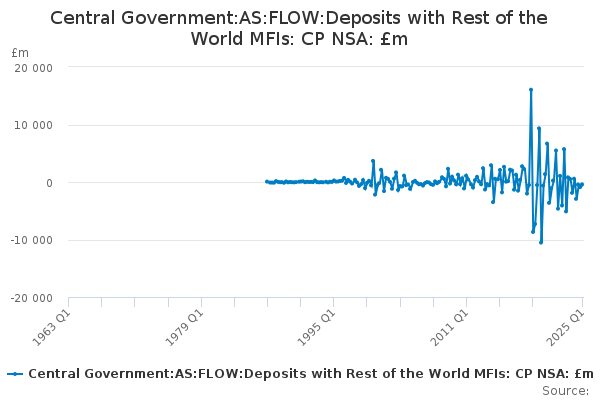 Download this time seriesCentral Government:AS:FLOW:Deposits with Rest of the World MFIs: CP NSA: £m