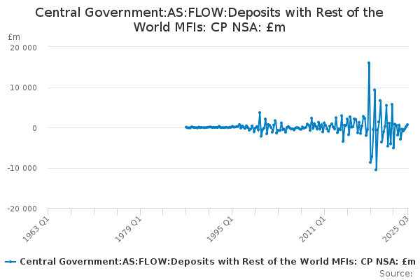 Download this time seriesCentral Government:AS:FLOW:Deposits with Rest of the World MFIs: CP NSA: £m
