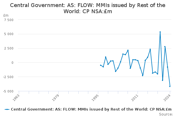 Download this time seriesCentral Government: AS: FLOW: MMIs issued by Rest of the World: CP NSA:£m