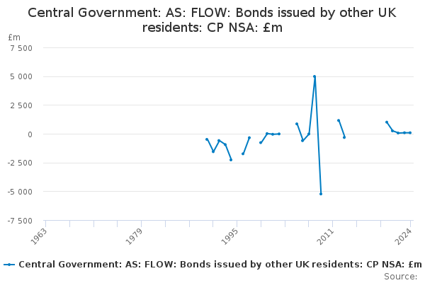 Download this time seriesCentral Government: AS: FLOW: Bonds issued by other UK residents: CP NSA: £m