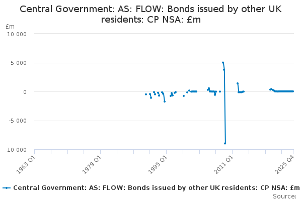 Download this time seriesCentral Government: AS: FLOW: Bonds issued by other UK residents: CP NSA: £m