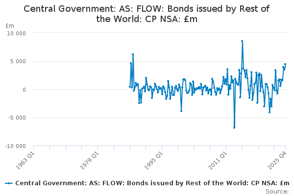 Download this time seriesCentral Government: AS: FLOW: Bonds issued by Rest of the World: CP NSA: £m