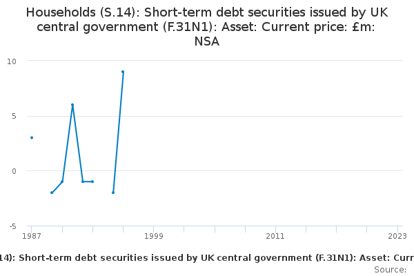 Download this time seriesHouseholds (S.14): Short-term debt securities issued by UK central government (F.31N1): Asset: Current price: £m: NSA