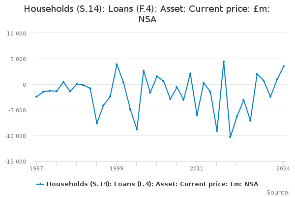 Download this time seriesHouseholds (S.14): Loans (F.4): Asset: Current price: £m: NSA