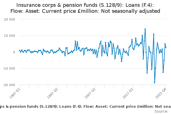 Download this time seriesInsurance corps & pension funds (S.128/9): Loans (F.4): Flow: Asset: Current price £million: Not seasonally adjusted