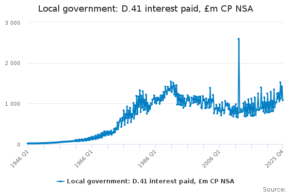 Download this time seriesLocal government: D.41 interest paid, £m CP NSA