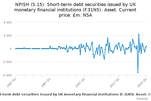 Download this time seriesNPISH (S.15): Short-term debt securities issued by UK monetary financial institutions (F.31N5): Asset: Current price: £m: NSA
