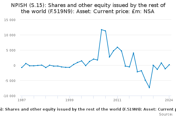 Download this time seriesNPISH (S.15): Shares and other equity issued by the rest of the world (F.519N9): Asset: Current price: £m: NSA