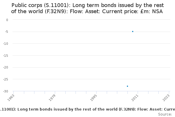 Download this time seriesPublic corps (S.11001): Long term bonds issued by the rest of the world (F.32N9): Flow: Asset: Current price: £m: NSA