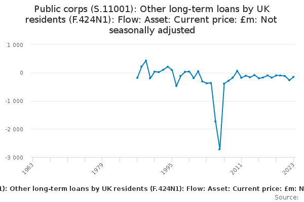 Download this time seriesPublic corps (S.11001): Other long-term loans by UK residents (F.424N1): Flow: Asset: Current price: £m: Not seasonally adjusted