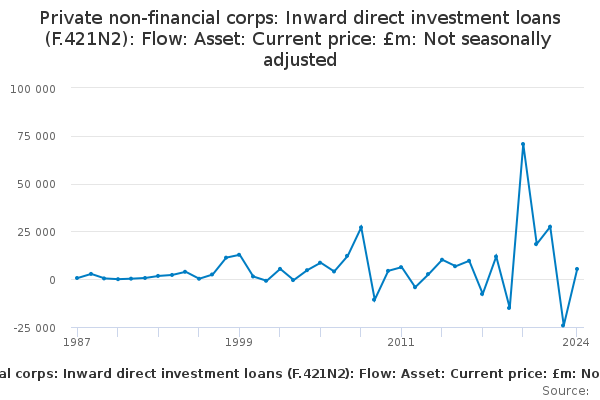 Download this time seriesPrivate non-financial corps: Inward direct investment loans (F.421N2): Flow: Asset: Current price: £m: Not seasonally adjusted