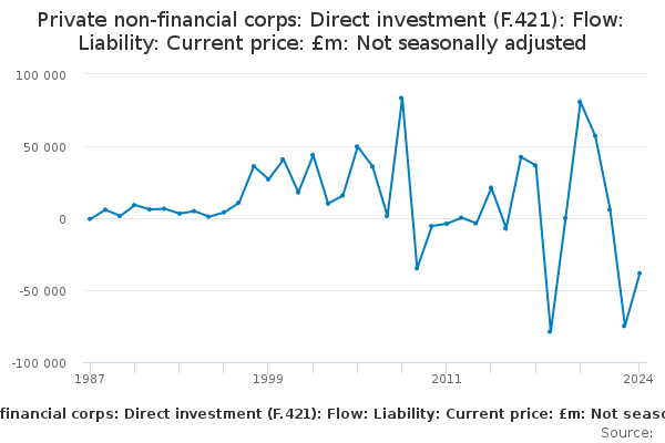 Download this time seriesPrivate non-financial corps: Direct investment (F.421): Flow: Liability: Current price: £m: Not seasonally adjusted