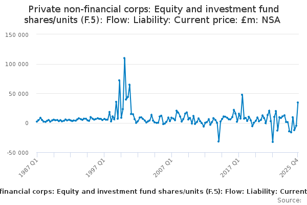 Download this time seriesPrivate non-financial corps: Equity and investment fund shares/units (F.5): Flow: Liability: Current price: £m: NSA