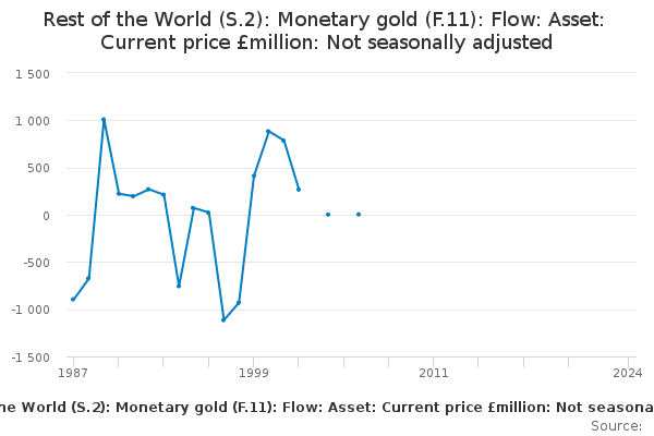 Download this time seriesRest of the World (S.2): Monetary gold (F.11): Flow: Asset: Current price £million: Not seasonally adjusted