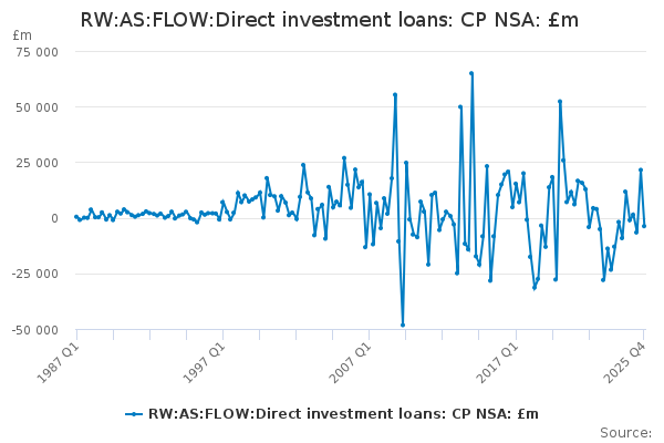 Download this time seriesRW:AS:FLOW:Direct investment loans: CP NSA: £m
