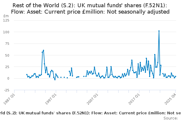 Download this time seriesRest of the World (S.2): UK mutual funds' shares (F.52N1): Flow: Asset: Current price £million: Not seasonally adjusted