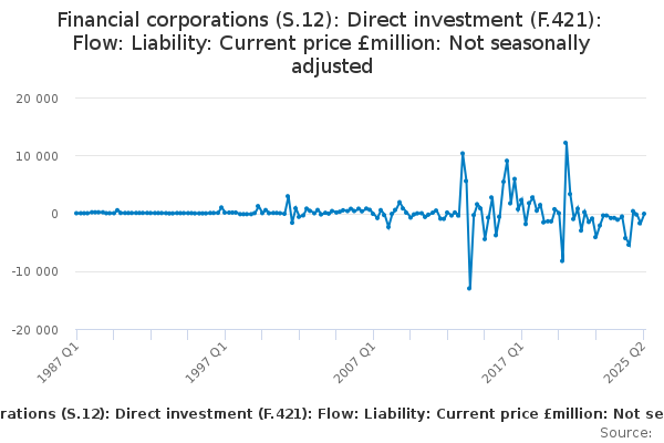 Download this time seriesFinancial corporations (S.12): Direct investment (F.421): Flow: Liability: Current price £million: Not seasonally adjusted