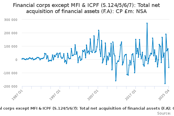 Download this time seriesFinancial corps except MFI & ICPF (S.124/5/6/7): Total net acquisition of financial assets (F.A): CP £m: NSA