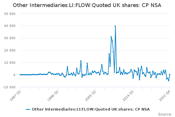 Download this time seriesOther Intermediaries:LI:FLOW:Quoted UK shares: CP NSA
