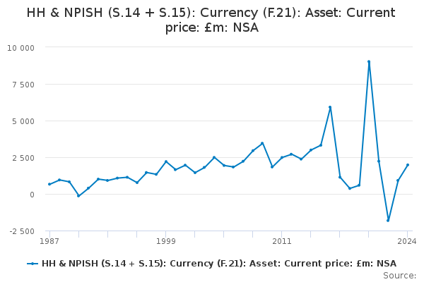 Download this time seriesHH & NPISH (S.14 + S.15): Currency (F.21): Asset: Current price: £m: NSA