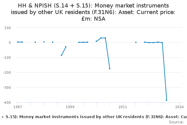 Download this time seriesHH & NPISH (S.14 + S.15): Money market instruments issued by other UK residents (F.31N6): Asset: Current price: £m: NSA