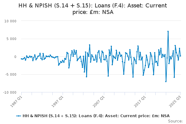 Download this time seriesHH & NPISH (S.14 + S.15): Loans (F.4): Asset: Current price: £m: NSA