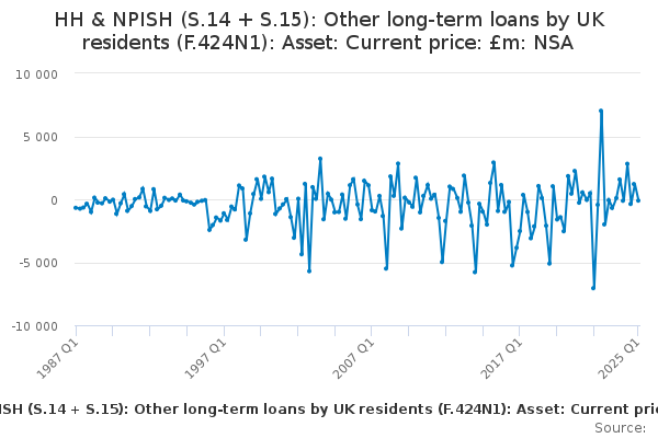 Download this time seriesHH & NPISH (S.14 + S.15): Other long-term loans by UK residents (F.424N1): Asset: Current price: £m: NSA