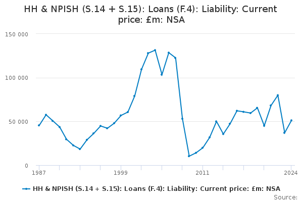 Download this time seriesHH & NPISH (S.14 + S.15): Loans (F.4): Liability: Current price: £m: NSA