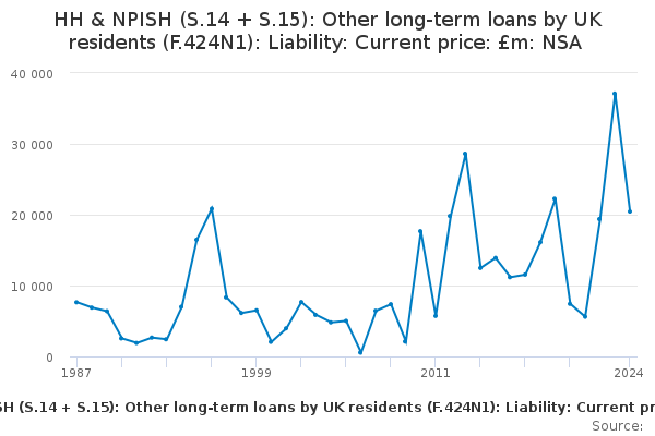 Download this time seriesHH & NPISH (S.14 + S.15): Other long-term loans by UK residents (F.424N1): Liability: Current price: £m: NSA