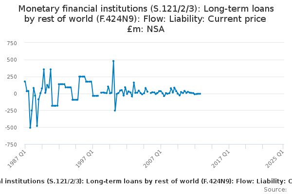 Download this time seriesMonetary financial institutions (S.121/2/3): Long-term loans by rest of world (F.424N9): Flow: Liability: Current price £m: NSA