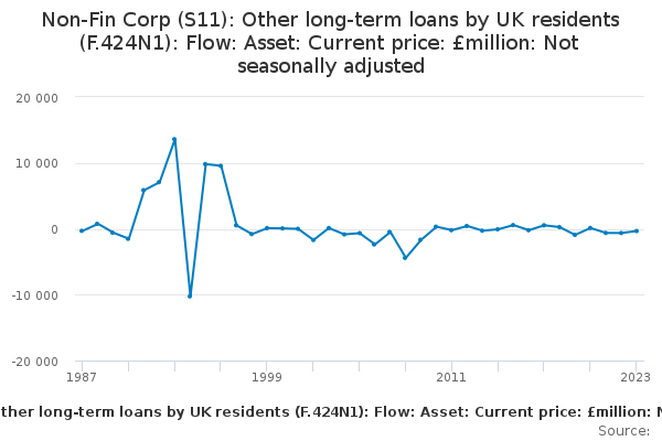 Download this time seriesNon-Fin Corp (S11): Other long-term loans by UK residents (F.424N1): Flow: Asset: Current price: £million: Not seasonally adjusted