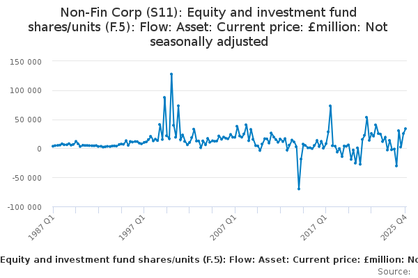 Download this time seriesNon-Fin Corp (S11): Equity and investment fund shares/units (F.5): Flow: Asset: Current price: £million: Not seasonally adjusted
