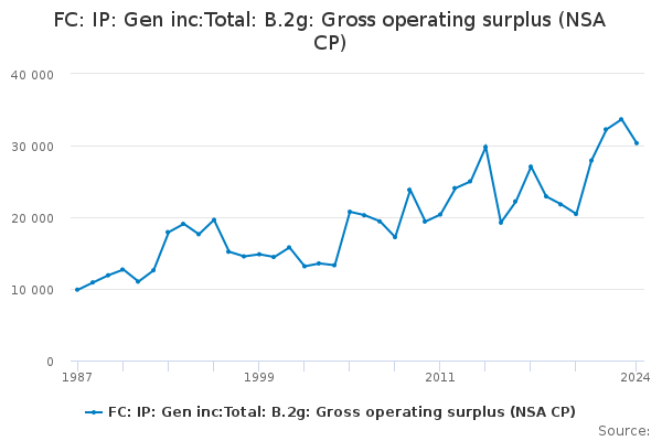 Download this time seriesFC: IP: Gen inc:Total: B.2g: Gross operating surplus (NSA CP)