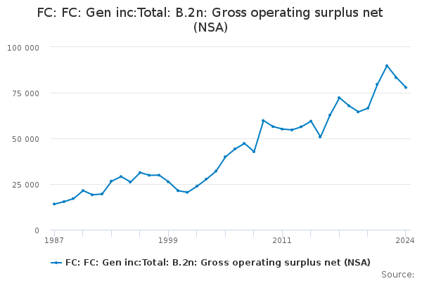 Download this time seriesFC: FC: Gen inc:Total: B.2n: Gross operating surplus net (NSA)