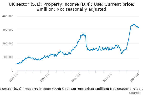 Download this time seriesUK sector (S.1): Property income (D.4): Use: Current price: £million: Not seasonally adjusted