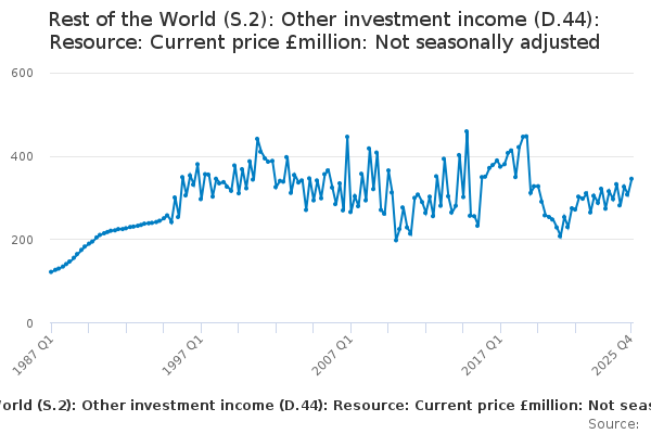 Download this time seriesRest of the World (S.2): Other investment income (D.44): Resource: Current price £million: Not seasonally adjusted
