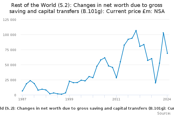 Download this time seriesRest of the World (S.2): Changes in net worth due to gross saving and capital transfers (B.101g): Current price £m: NSA