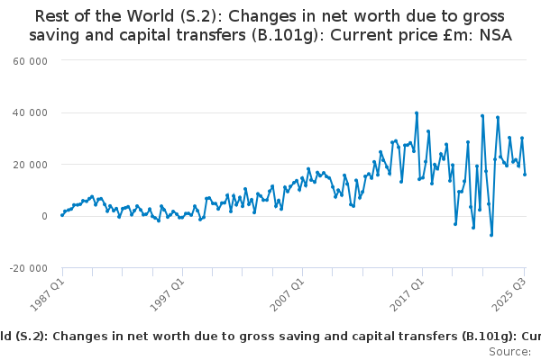 Download this time seriesRest of the World (S.2): Changes in net worth due to gross saving and capital transfers (B.101g): Current price £m: NSA