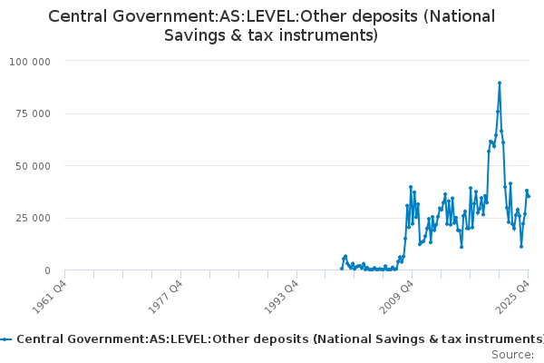 Download this time seriesCentral Government:AS:LEVEL:Other deposits (National Savings & tax instruments)
