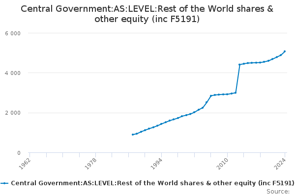 Download this time seriesCentral Government:AS:LEVEL:Rest of the World shares & other equity (inc F5191)