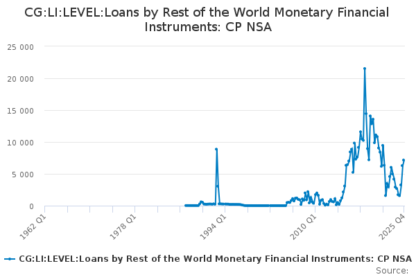Download this time seriesCG:LI:LEVEL:Loans by Rest of the World Monetary Financial Instruments: CP NSA