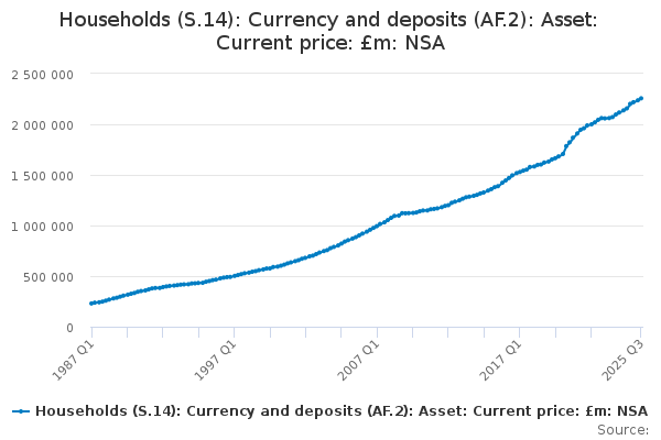 Download this time seriesHouseholds (S.14): Currency and deposits (AF.2): Asset: Current price: £m: NSA
