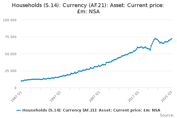 Download this time seriesHouseholds (S.14): Currency (AF.21): Asset: Current price: £m: NSA
