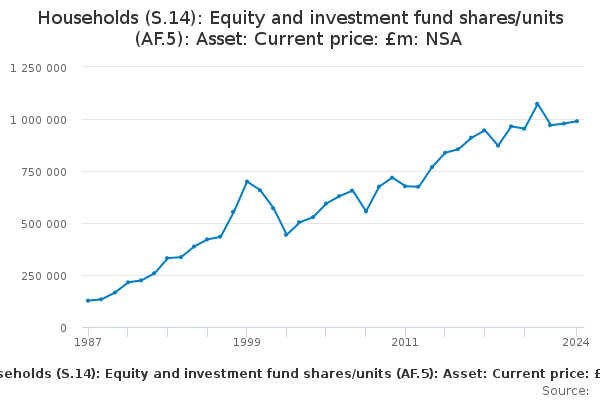 Download this time seriesHouseholds (S.14): Equity and investment fund shares/units (AF.5): Asset: Current price: £m: NSA