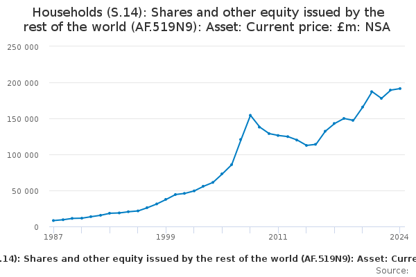 Download this time seriesHouseholds (S.14): Shares and other equity issued by the rest of the world (AF.519N9): Asset: Current price: £m: NSA