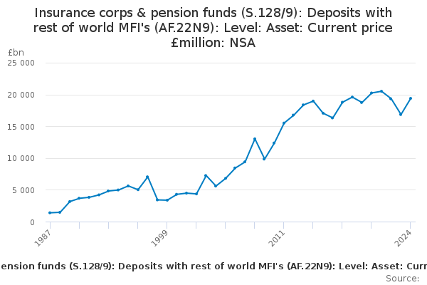 Download this time seriesInsurance corps & pension funds (S.128/9): Deposits with rest of world MFI's (AF.22N9): Level: Asset: Current price £million: NSA