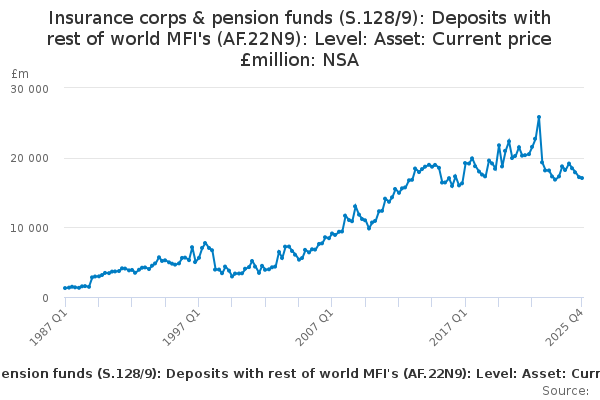 Download this time seriesInsurance corps & pension funds (S.128/9): Deposits with rest of world MFI's (AF.22N9): Level: Asset: Current price £million: NSA